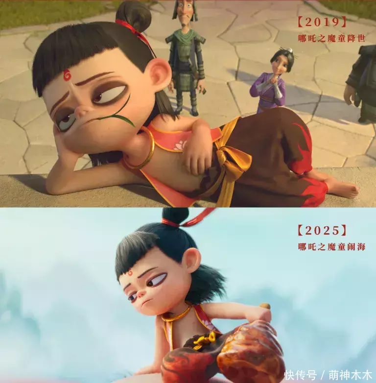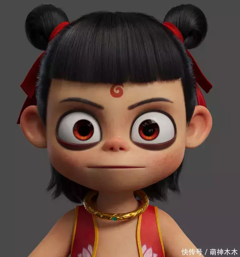在承接前作的风格之下,《哪吒2》更注重真实感和细节质感的提升,哪怕出场时间不多的小配角也是如此,尤其是在小哪吒身上,对皮肤质感,毛孔,斑点等各方面都进行了全方面的优化,就连小哪吒脸上的黑眼圈都是团队改用了程序化纹理多次调试才得到了丝滑的结果。