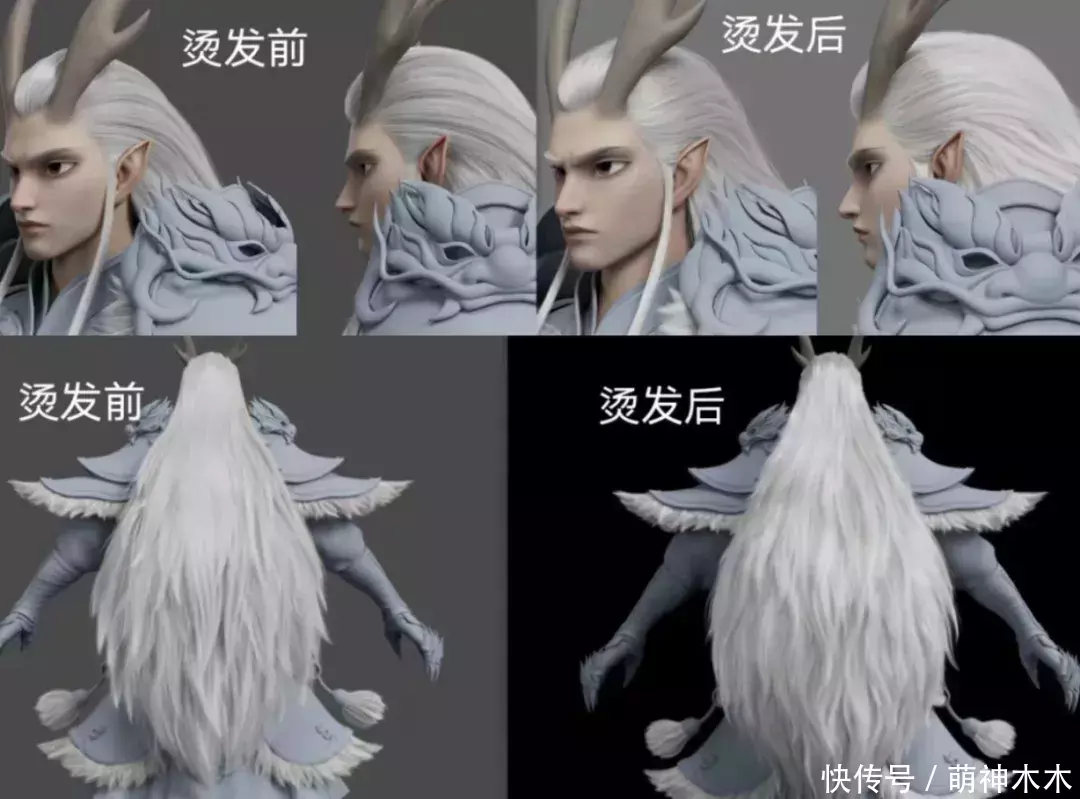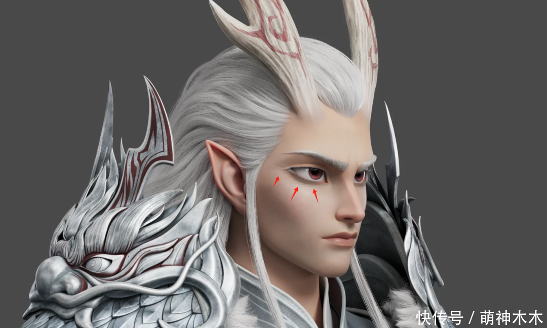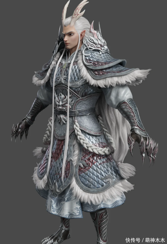 另外还有作为龙族首领的敖龙,团队力求在服装上的每一块铠甲都要体现出独特的质感,同时,为了达到敖龙肤色和质感的统一,团队还加入了鱼尾纹和法令纹的细微变化,让整个形象看起来更加生动。