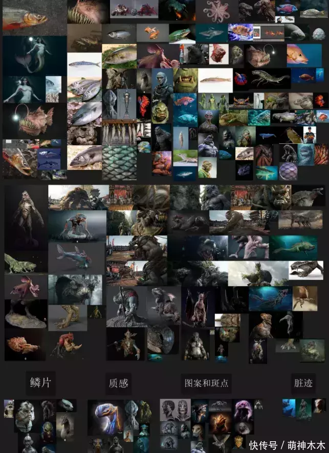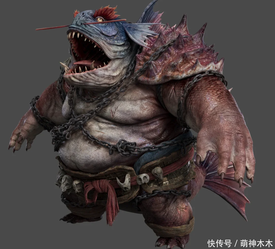 除了敖龙的面部建模塑造得很成功之外,还有各种海底怪物的细节也做得很好,制作团队用海量的海底生物照片作为参考,对皮肤纹理进行了大量测试,还大胆地把鱼鳞,象皮,鳄鱼皮等多种材质加以拼接混合,保证最终成品看起来真实又魔幻。